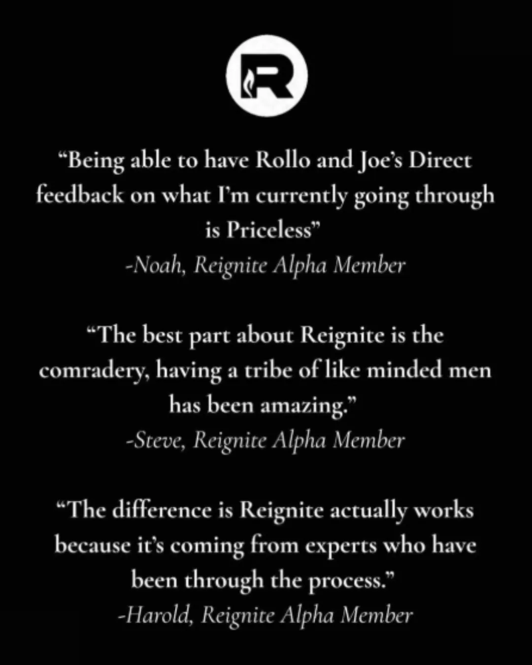 Mastermind Sessions – Learn directly from Rollo Tomassi and Joe. They’ll take the principles of The Rational Male and show you how to apply them in the real world.